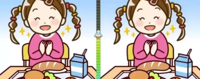 Acestea două prezintă o fată ccinată la masă. La prima vedere, cele două imagini sunt identice, dar există trei diferențe care nu sunt evidente între ele. Încercați să le găsiți.