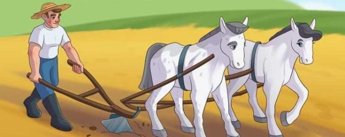 În imagine vedem doi cai care trag un plug și un bărbat care conduce plugul. La prima vedere, poate părea că nu este nimic neobișnuit în această scenă – totul pare în regulă. Dar nu credeți această primă impresie, pentru că undeva în imagine se ascunde o greșeală.