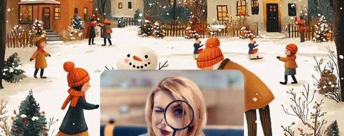Mai jos veți vedea o imagine a unui pătrat acoperit de zăpadă în care oamenii se plimbă. Cineva se joacă cu bulgări de zăpadă, cineva face un om de zăpadă sau pur și simplu admiră peisajul de iarnă.