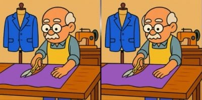 Într-un alt puzzle viz, trebuie să găsiți trei diferențe între două ilustrații care prezintă un hoț de bunici care taie pânză cu foarfeca, scrie jagranjosh.