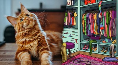 Pisica s-a ascuns atât de bine în dulap, încât doar câteva persoane o vor observa.