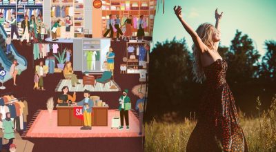 Uitați-vă atent la imagine. Veți vedea o scenă care înfățișează mai mulți cumpărători plimbându-se printr-un magazin de îmbrăcăminte în timpul unei mari reduceri. Dar puteți găsi cinci rochii în imagine?