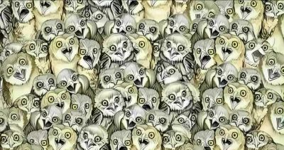 Aruncați o privire la imaginea de mai jos. Imaginea arată un grup de bufnițe. Dar ele nu sunt singure. O pisică s-a ascuns ingenios printre bufnițe.