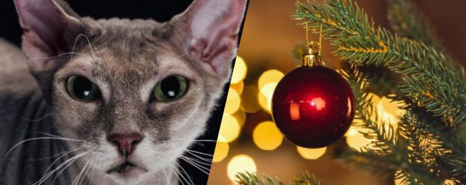 Pisica se ascundea printre ramurile unui pom de Crăciun / colaj cu fotografia Moje